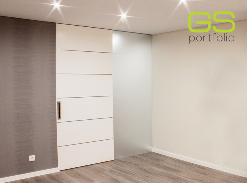 - Placard encastrée GS CONCEPT avec portes battantes en laqué blanc mat.